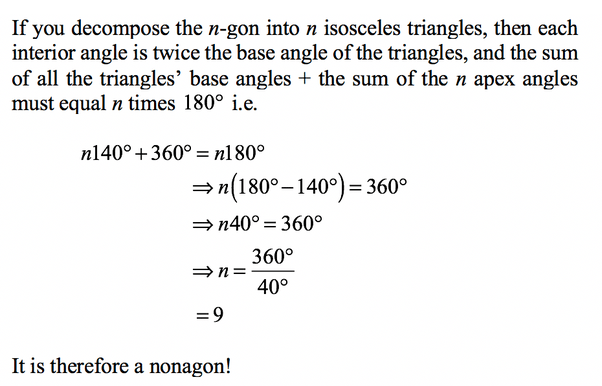 And we get to the originally stated formula. To find the number of sides given the central angle 6°: Find the value of x. All the interior angles in a regular polygon are equal. Each sheet makes 8 pages of a notebook.